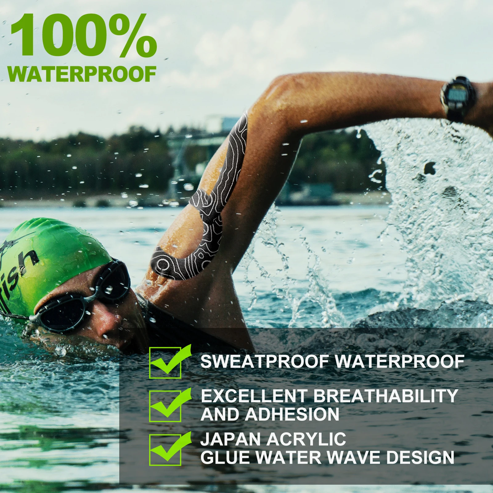 Built with breathable and waterproof technology, the tape stays securely in place through intense workouts, sweat-heavy training sessions, swimming, showering, and all-weather outdoor activities. Its strong yet gentle adhesive ensures long-lasting hold without irritating the skin, making it suitable for extended wear up to several days at a time.